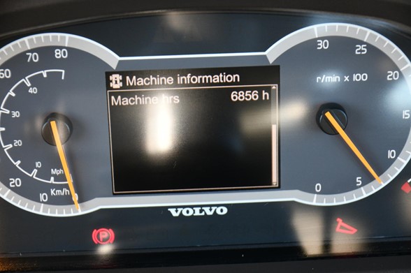 Cab, A/C, meter reads 6856 hours, tires 750-65R x 25, no tailgate