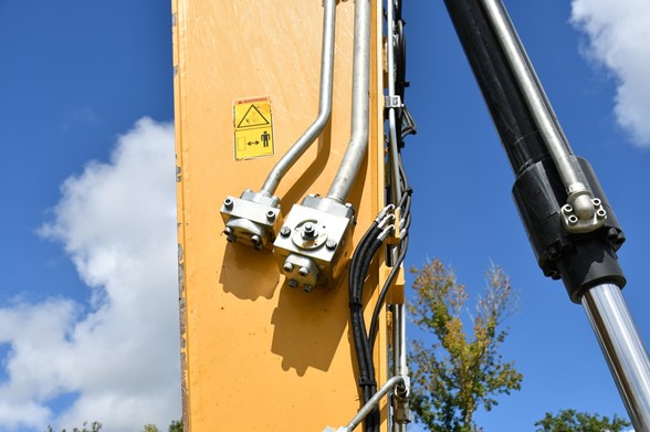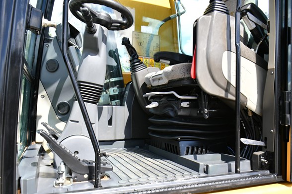 Cab,A/C., meter reads 4,902 hours, Air Ride Seat, Control Pattern Changer, 10 ft 6 in Stick, Auxiliary Hydraulic Plumbing, Front and Rear Stabilizers, 10.00×20 Tires, 72 in Hydraulic Tilting Bucket, Auto Lube
