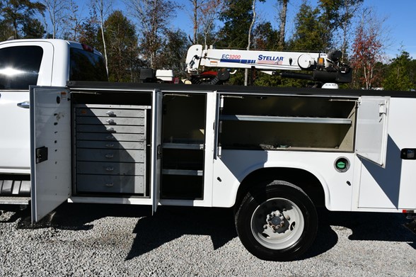 80,791 miles, 4 x 4 , 16ft stellar mechanics tool body, reinforced crane mount, stellar 3200 crane, ingresoll-rand air compressor, immaculate