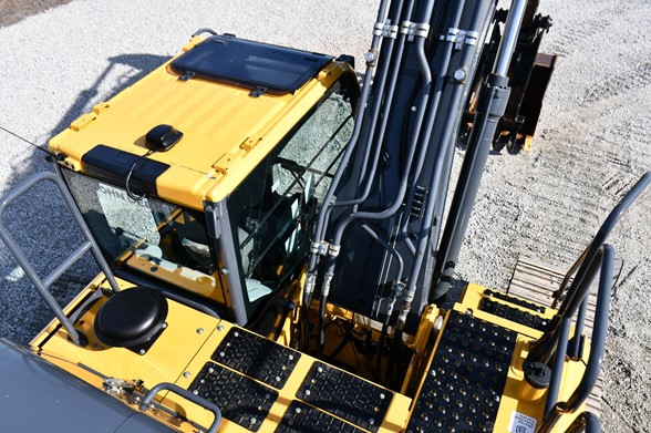 Cab,A/C, meter reads 1934 hours, New Hydraulic Thumb, quick coupler, 49 inch bucket